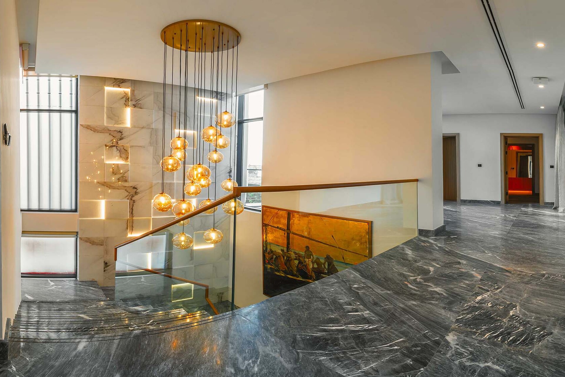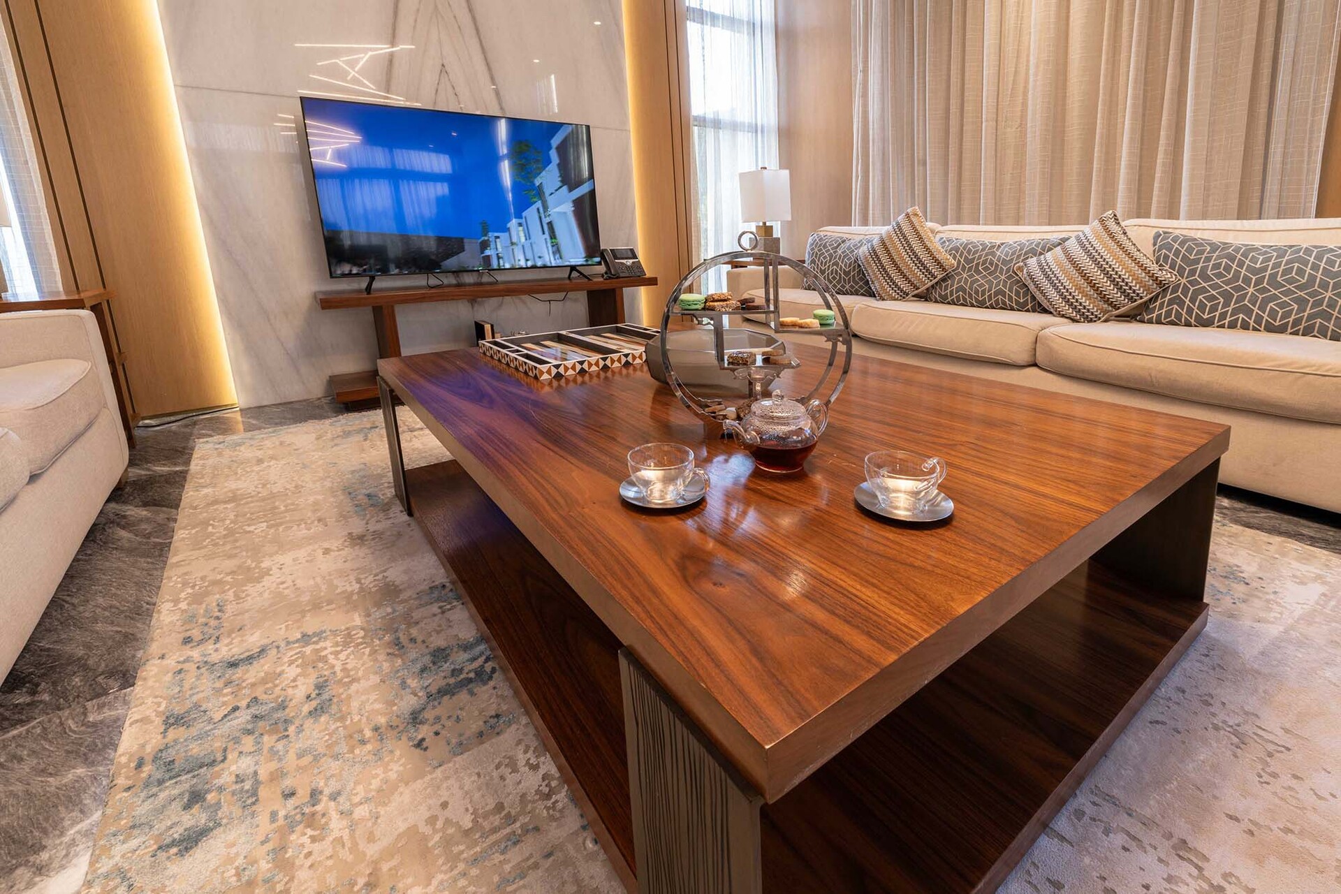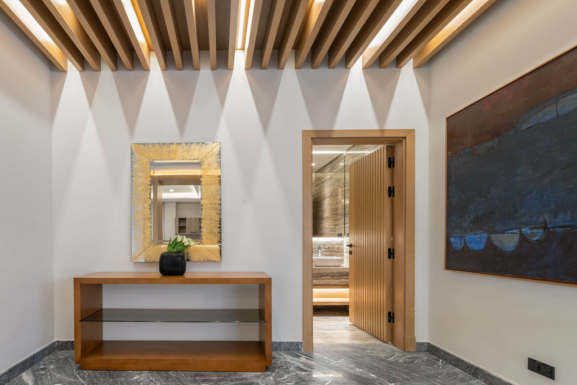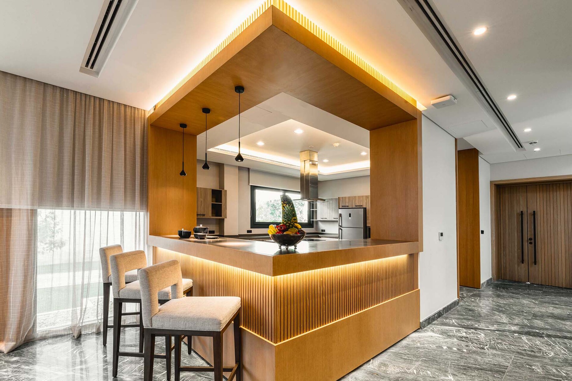 Featuring premium Italian marble flooring and cladding, elegant wood wall finishes, and high-pressure engineered wood flooring in bedrooms — every detail is crafted for timeless sophistication.